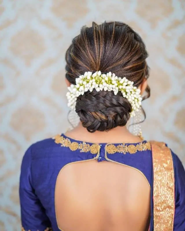 A perfectly created classic bun with a twist is the best hairstyle for saree. Though a bun has always been a go-to hairstyle everyone loves to do, its modern version enhances its complete appearance. You can add accessories such as flowers and stunning designer pins to beautify your bun. This simple hairstyle for saree is the best option to consider for formal gatherings and weddings, as it will last for hours.
